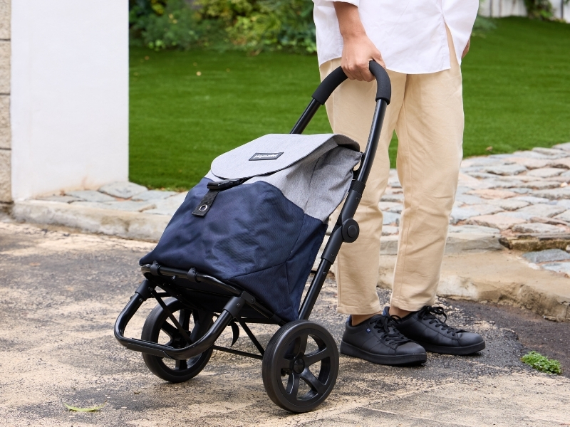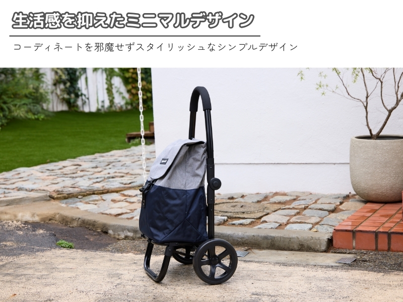 カートらしさを抑えたモダンなルックスは、普段着や街並みに馴染みやすく、性別・世代を問わず自然に使えるデザインです。素材感や配色も暮らしの中に溶け込むよう設計しています。